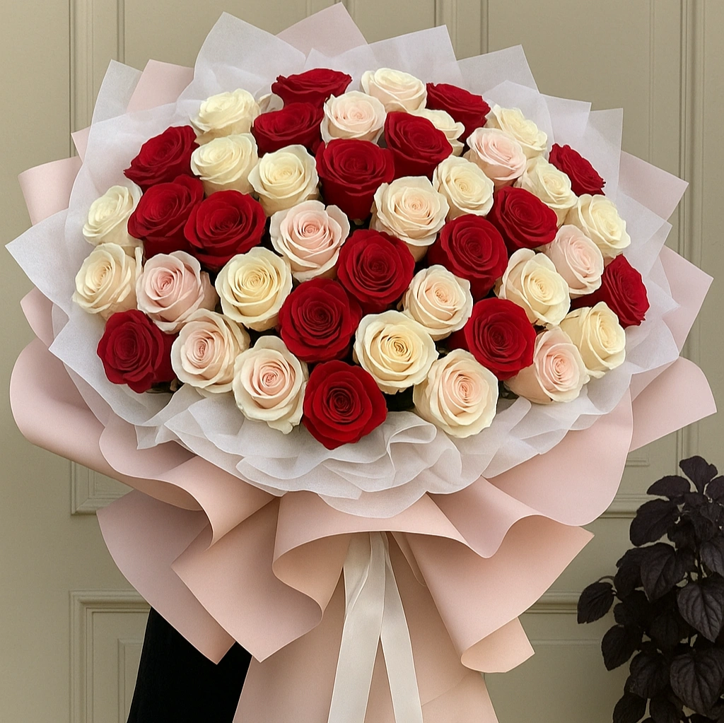 Mixed Roses Bouquet -50 pcs (White, Pink and Red)
