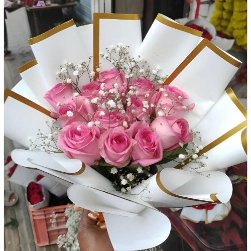 12 Fresh Pink Rose Bouquet