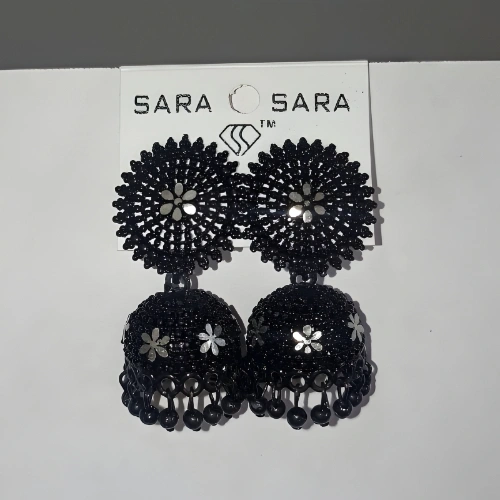Black Dome Jhumka Earrings with Shining Flower Design
