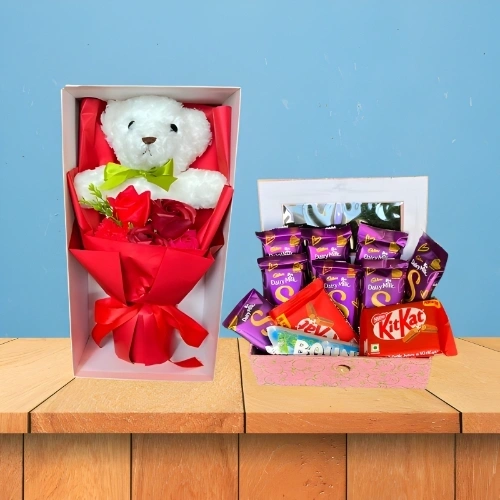 Lovely Assorted Roses with Adorable White Doll Perfectly Packaged in a Gift Box-1