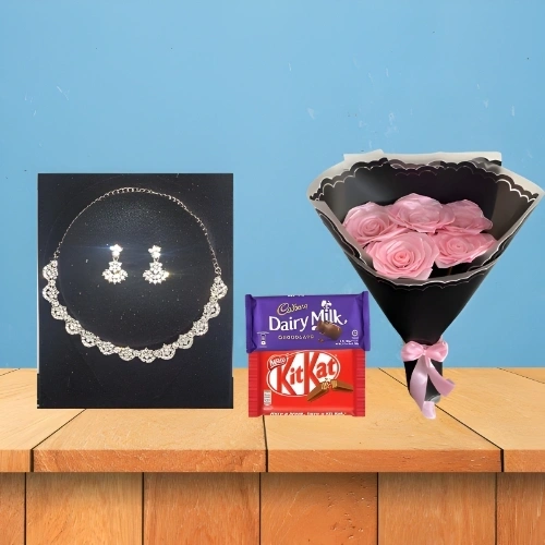 Royal Sparkle Silver Color Crystal Floral Elegance Necklace and Dangle Earrings Set-1
