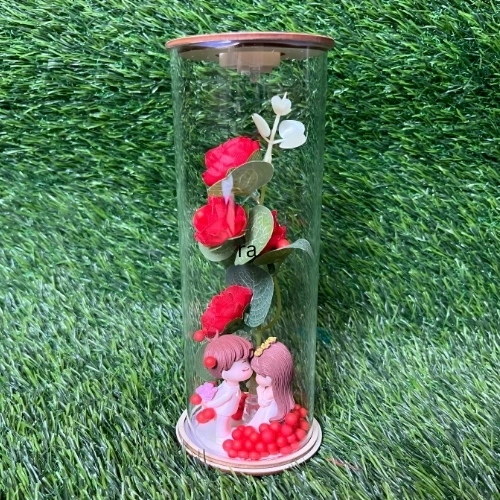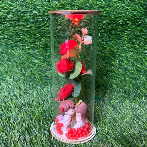 Forever Us Couples Statue with Illuminated Rose Encased in Transparent Glass 19 cm-1