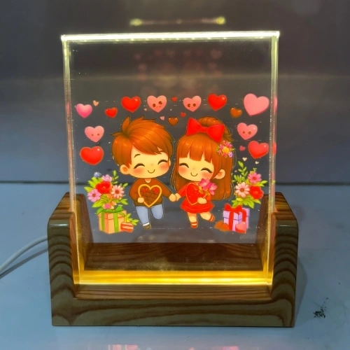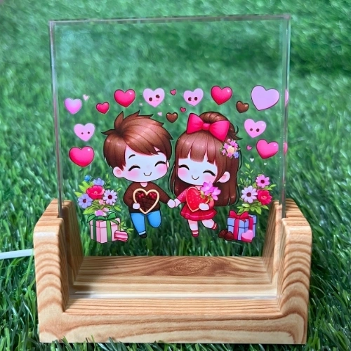 • Light of Our Love: 3D Glass Lamp Featuring Boy and Girl Holding Heart Symbol-1