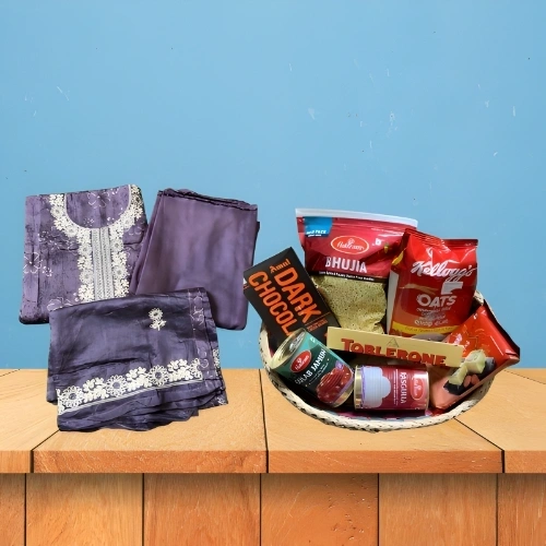 Fine Thread Work Purple Kurtha Set-1