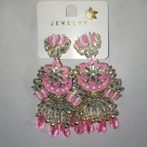 Pink Bloom Dangling Earrings with Shimmering Finish