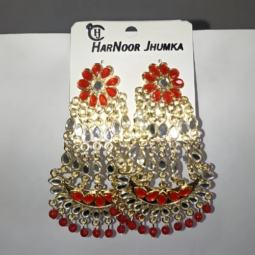 Regal Rani Red Stone Layered Jhumkas