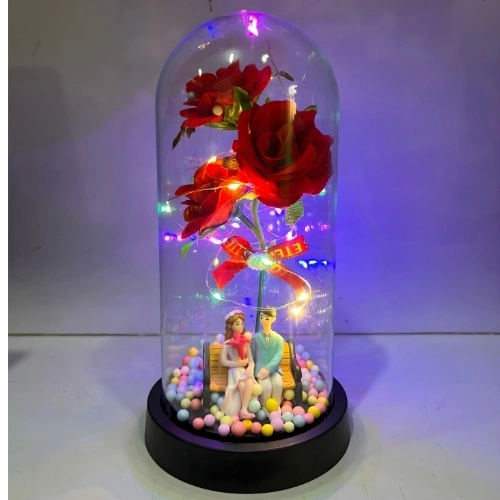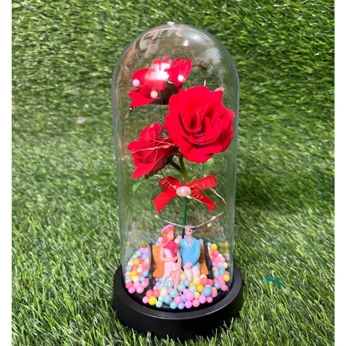 Romantic LED Glowing Red Rose Dome with Cute Couple Figurine Love Showpiece-1