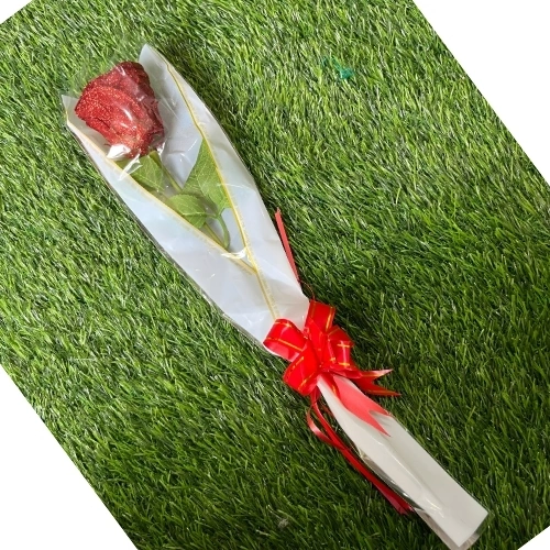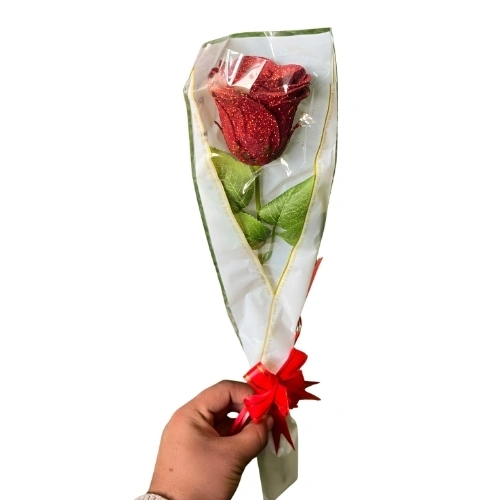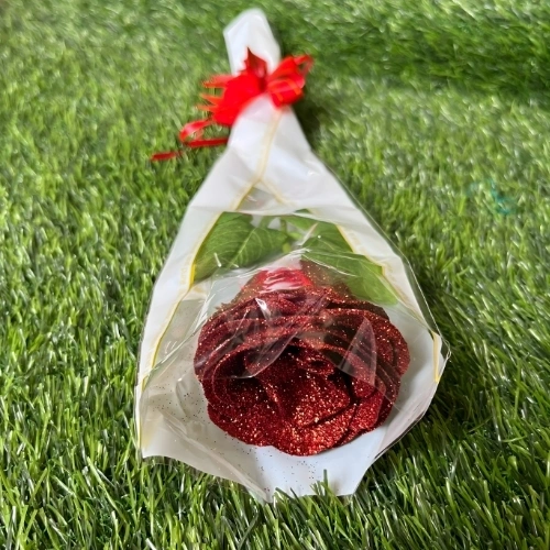 Single Artificial Glitter Red Rose-1