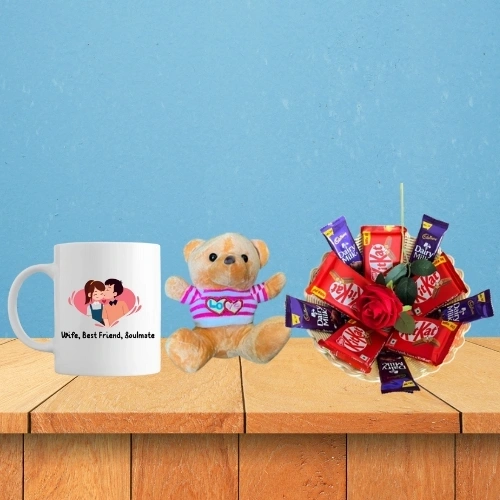Sweet Embrace Collection: Teddy, Chocolates, Custom Cup & Red Rose
