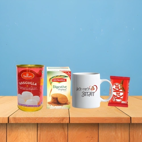 Sweet Love Delight Combo with Rasgulla, Biscuits, Chocolate & Printed Mug