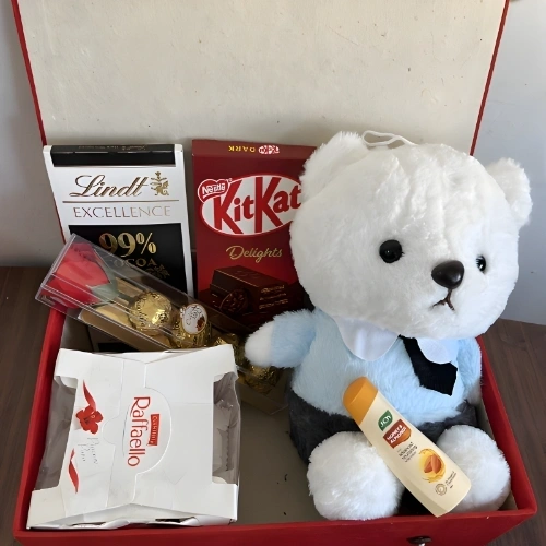 Sweet Love Teddy with Luxury Chocolate & Care Gift Hamper Box