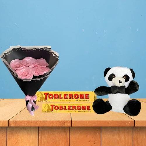 5 Pink Ribbon Rose Bouquet-1