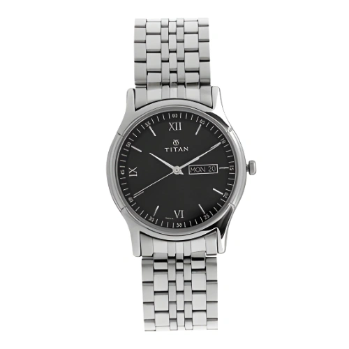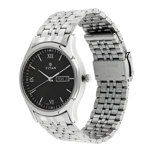 Titan Karishma Black Dial Analog with Day and Date Stainless Steel Strap watch for Men- 1636SM01