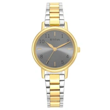 The Titan Karishma Grey Dial Analog Watch for Women (2678BM01) combines everyday elegance with reliable performance. Designed under Titan’s trusted Ladies Karishma collection, this watch features a stylish grey dial paired with a two-tone stainless steel strap, making it suitable for both casual and formal wear.