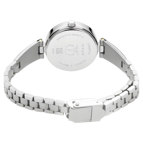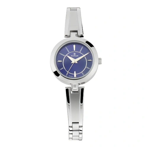 The Titan Quartz Analog Blue Dial Metal Strap Watch for Women (2598SM03) combines everyday elegance with reliable performance. Designed under Titan’s trusted Quartz Analog collection, this watch features a blue dial paired with a stainless steel strap, making it suitable for both casual and formal wear.
