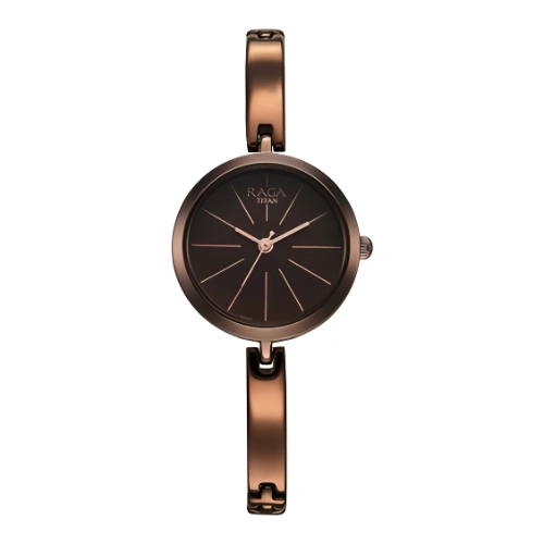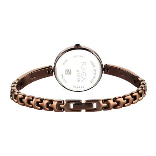 The Titan Raga Viva Quartz Analog Brown Dial Brown Metal Strap Watch for Women (2606QM03) combines everyday elegance with reliable performance. Designed under Titan’s trusted Raga Viva collection, this watch features a stylish brown dial paired with a metal strap, making it suitable for both casual and formal wear.
