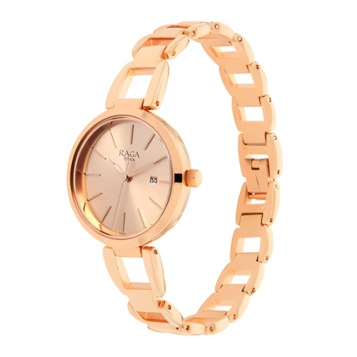 The Titan Raga Viva Rose Gold Dial Quartz Metal Strap Watch for Women (2642WM01) combines everyday elegance with reliable performance. Designed under Titan’s trusted Raga Viva IV collection, this watch features a stylish rose gold dial paired with a stainless steel strap, making it suitable for both casual and formal wear.