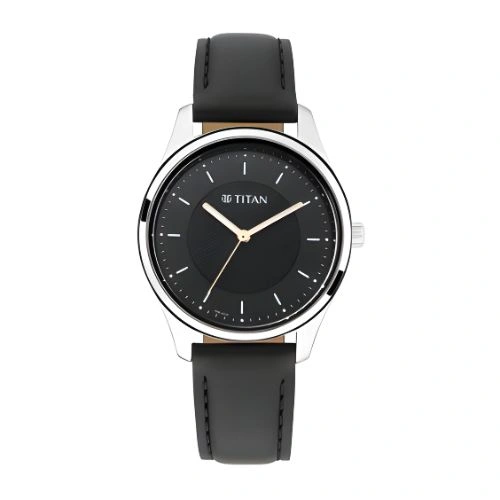 Titan Workwear Black Dial Women Watch With Leather Strap- 2639SL01